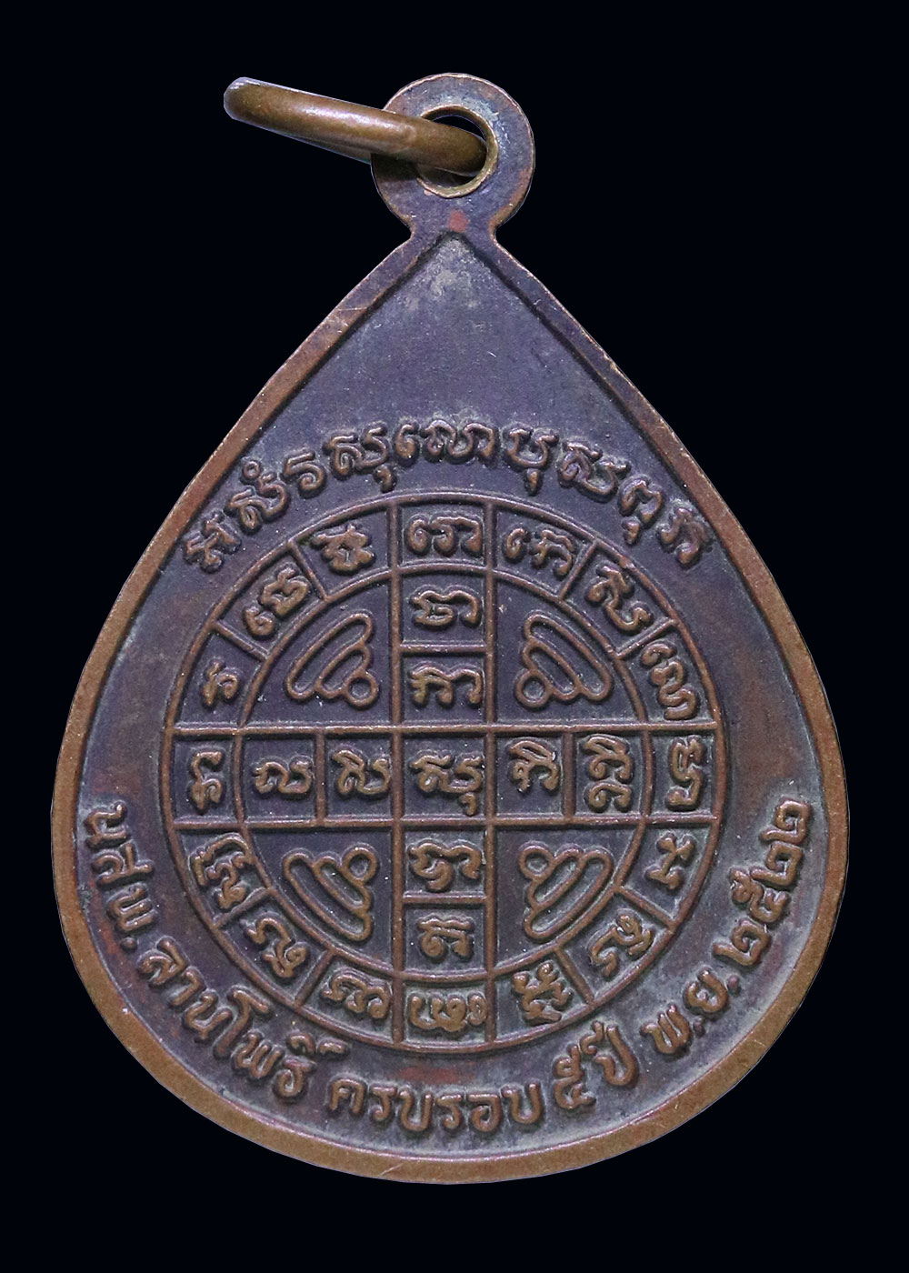 เนื้อทองแดง สภาพดีและสภาพใช้ หนังสือพิมพ์ลานโพธิ์ ครบรอบ ๕ ปี ปี ๒๕๒๒ หลังยันต์ดวงสุกิตติมา และพระคาถานวหรคุณ มีแบ่งให้บูชา ๓ เหรียญ บูชาเหรียญละ